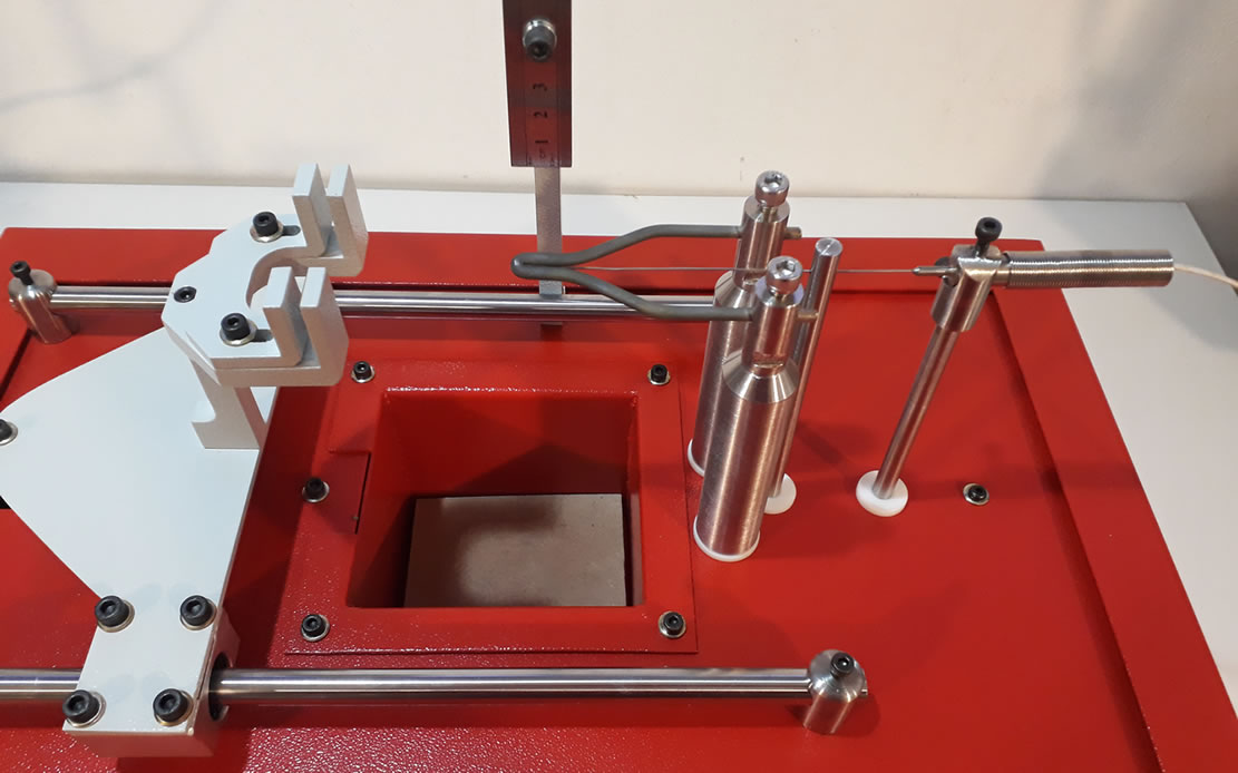 Our SECOM Glow Wire Tester (EFI 02) has a loop of resistance wire is electrically heated to a specified temperature and the specimen being tested is brought into contact with this heated wire with a defined horizontal loading.